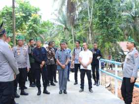 Akses Vital, Bupati Kampar Dampingi Kapolda Riau Tinjau Langsung Pembangunan Jembatan Presisi Polri di Desa Lubuk Agung XIII Koto Kampar.